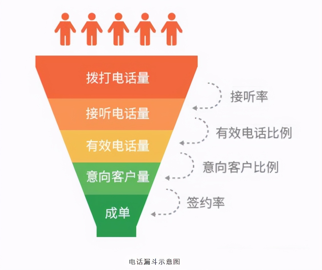 影响电销团队效率三大因素首先我们讨论的电销团队是有一定座席规模的,专门靠外呼获取客户的团队。以100座席的团队为例,每个座席每天节省1个小时时间,100人的团队就可以节省12.5个人的成本,这样的数据才有意义。所以大多数企业为了提高拨号效率,本质上是想提高工具效率以达到降低人员成本的目的,但往往效果并不理想,还造成了很高的骚扰率和投诉率,严重得甚至被服务商关停。所以如果想从本质上提高电销团队的效益,我们必须了解电销团队工作流程一些关键的指标: