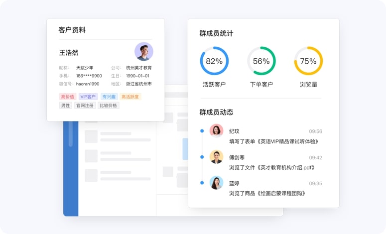 智能标签:根据客户行为自动沉淀标签,识别客户画像;