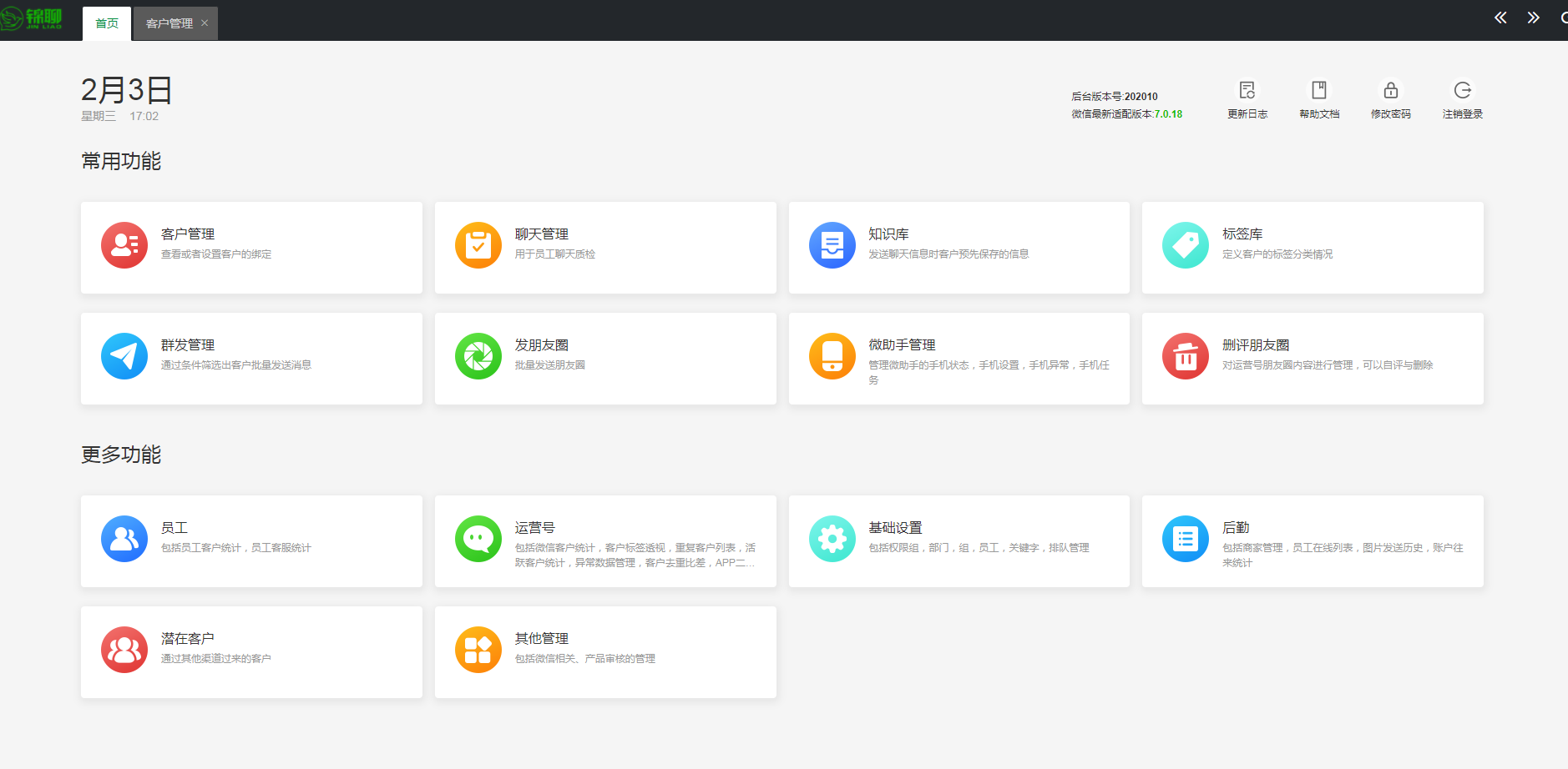 许多人见面沟通后的第一句已经从“那留个电话吧”转变成“咱们加个微信”,销售业务员在了解客户意向后,也都会在微信内进行后续的沟通以及新老客户的维护。这时就出现了问题,客户的所有信息,沟通的内容都在业务员的微信内,即使公司要求员工在表格中记载客户信息,也无法让下一个工作人员全面了解。我们每一次和客户沟通,都像是第一次沟通不知道客户喜欢什么,讨厌什么,买了什么,说了什么,很难达到好的转化。就助贷企业来说,不知道客户的贷款资质,进件条件,征信情况,之前做了哪些贷款,怎么能更好的邀约客户呢?